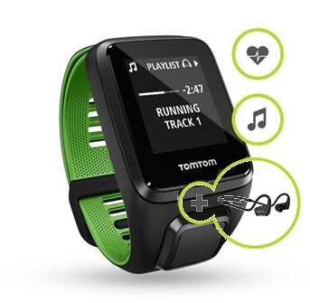 TomTom Runner 3 Cardio + Musik + Kopfhörer, schwarz-grün (Größe S) - GPS Laufuhr mit Herzfrequenzmessung am Handgelenk + Musikplayer + Bluetooth Kopfhörer