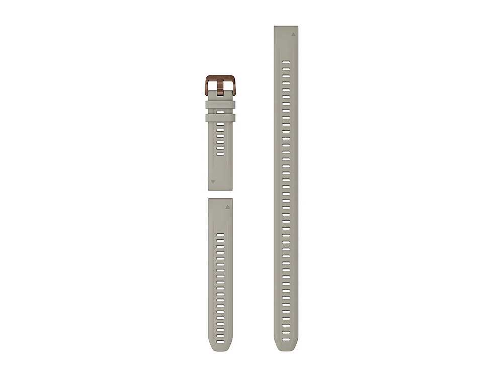 Garmin QuickFit 20 Silikon Tauch-Armband, beige (010-13359-00), Ersatzarmband für Garmin Tauch Smartwatch. Ob über einem dicken Nassanzug oder einem Trockenanzug, mit diesen Silikonarmbändern verleihst du deiner Uhr im Handumdrehen einen neuen Look. Das Band ist nicht lang genug? Ein extra langes Einstellband, das auch über deine Tauchausrüstung passt und unter Wasser getestet wurde, ist im Lieferumfang enthalten. Der Austausch ist einfach und immer sicher. Werkzeug ist nicht erforderlich. 3-teiliges Set: Einstellband 124mm, langes Einstellband 263mm, Schnallenband 93mm lang. Berechne bei der Bestimmung des richtigen Armbandes die Länge des Uhrenkörpers mit ein.