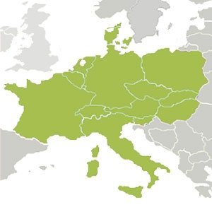 - Detailgenaue Abdeckung: Belgien, Dänemark, Deutschland, Frankreich, Italien, Liechtenstein, Luxemburg, Malta, Monaco, Niederlande, Österreich, Polen, San Marino, Schweiz, Slowakei, Slowenien, Tschechien, Ungarn, Vatikanstadt