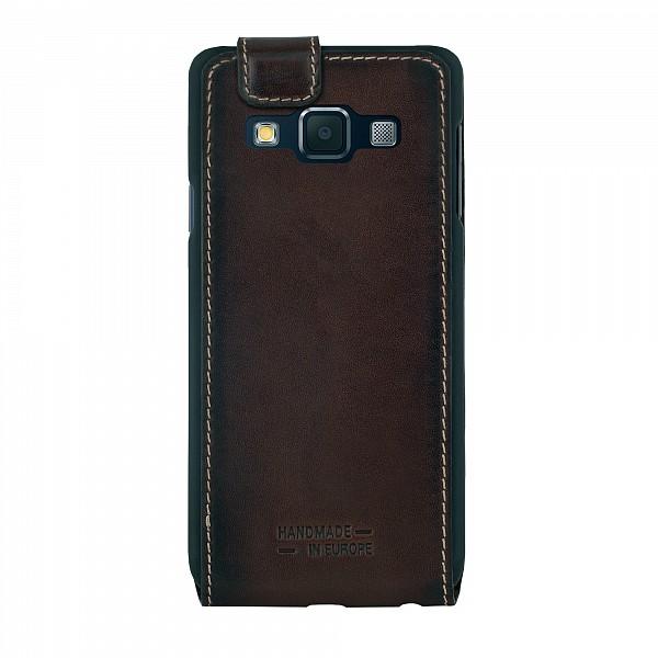 Das Flip-Cover Amsterdam für Ihr Samsung Galaxy A3 ist handgefertigt aus echtem Leder und sorgt durch seinen spannenden Vintage-Look garantiert für Aufmerksamkeit. Die Ledertasche umschließt Ihr Samsung Galaxy A3 auf der Rückseite mit einem robusten Hardcover passgenau und verwahrt es so sicher auf. Die oben angebrachte Verschlusslasche bietet schnellen Zugriff auf das Smartphone und verschließt es bei Bedarf sicher. Weiches, samtiges Futter bietet dem Display in geschlossenem Zustand optimalen Schutz.