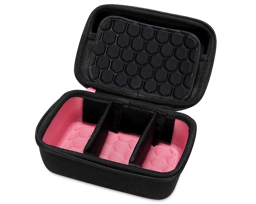 - Innenmaterial: Jersey-Futter (Deckel Schwarz, Boden Pink)