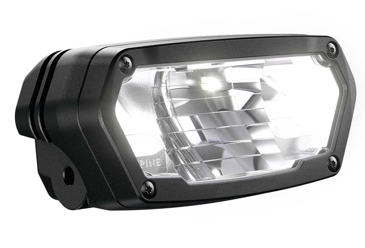 Mit einer Helligkeit von bis zu 2.400 Lumen im Fernlichtmodus und 900 Lumen im blendfreien Abblendlicht sorgt der kompakte Frontscheinwerfer für klare Sicht und Sicherheit in jeder Umgebung. Das speziell entwickelte Reflektor-System erzeugt in Kombination mit den streng selektierten Automotive-LEDs von OSRAM ein extrem breites und homogenes Leuchtbild mit präziser Hell-Dunkel-Grenze. Eine sensorbasierte Tagfahrlichtfunktion passt die Beleuchtung automatisch an die Umgebungshelligkeit an und sorgt für ständige Sichtbarkeit im Straßenverkehr.