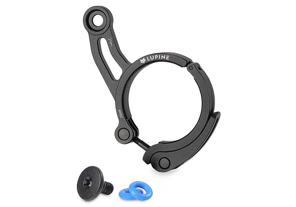 Lupine Piko/Blika Schnellspanner 35mm (1235X), einseitiger Schnellspanner zur flexiblen Montage der Lampenmodelle Piko oder Blika an runden Stangen / Rohren gefertigt aus schwarz eloxiertem Aluminium.
