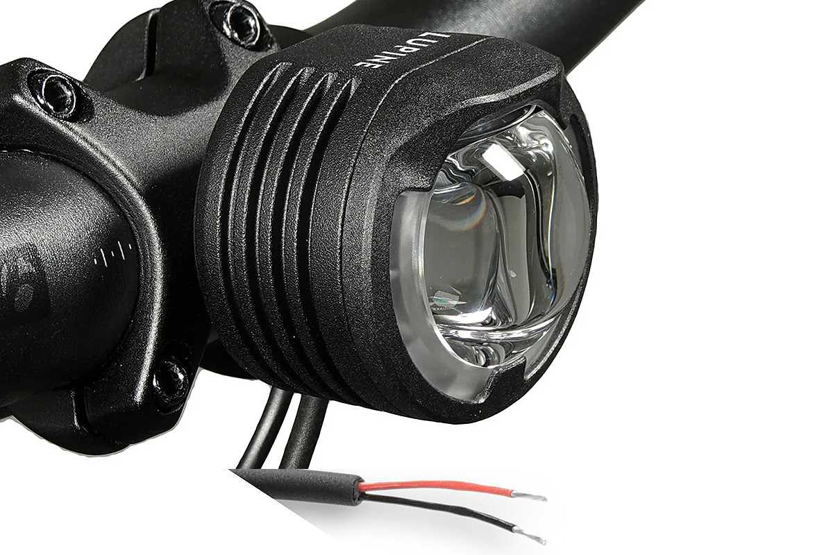 Das Gehäuse besteht aus eloxiertem Aluminium 6061-T6 und erfüllt die Schutzklassen IP67 und IK09. Dadurch ist die Lupine SL F für E-Bikes gegen Staub, Wasser und Stöße geschützt und für anspruchsvolle Einsatzbedingungen geeignet. Die Steuerung erfolgt über eine Fernbedienung mit Farb-LED-Anzeige, die den aktiven Lichtmodus signalisiert. Direkt an den Lichtausgang des Shimano Motors angeschlossen, bezieht das Frontlicht die Energie aus dem Akku des E-Bikes. Die integrierte Elektronik sorgt für eine automatische Anpassung der Leistung an die jeweilige Spannung. Dadurch entsteht eine hohe Kompatibilität mit nahezu allen gängigen Antriebssystemen und eine stets optimale Lichtleistung. Diese Version der Lupine SL F kann direkt an Shimano E-Bike Motoren für offene Litzen angeschlossen werden