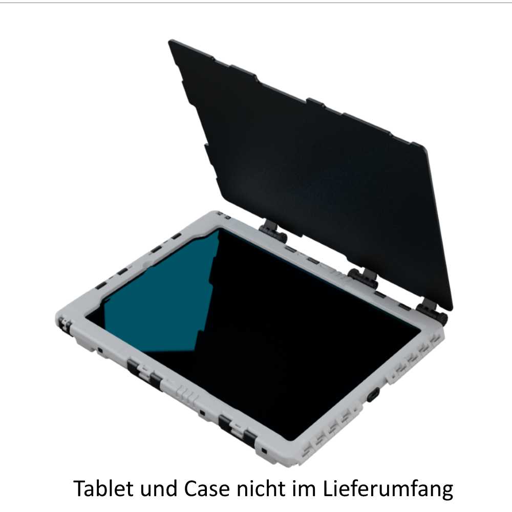 Das Andres Industries Sunshade 12 ist ein seitliches Zubehör für das aiShell 12. Geschlossen dient es als Displayschutz für Ihr kompatible iPad in einem Andres Industries aiShell Schutzgehäuse. Weiterhin dient es als Sonnenschutz und als Tischständer, da das aiShell Sunshade 12 in jedem Winkel verstellbar ist. Es kann zudem durch zwei Drehknöpfe arretiert werden. Das aiShell 12 Schutzgehäuse gehört nicht zum Lieferumfang!