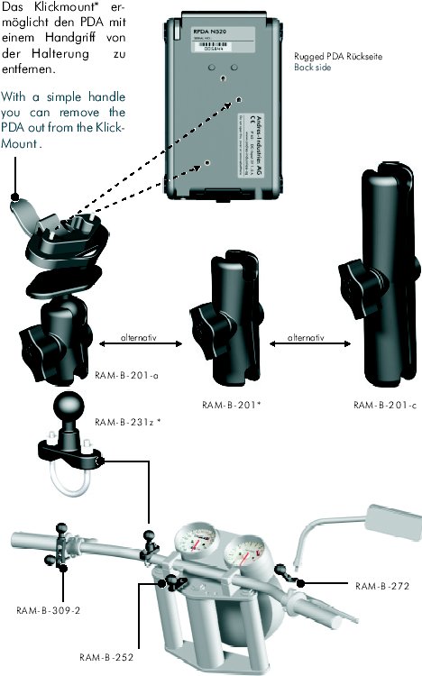 *Das RAM-B-231z, RAM-B-201 und das Klickmount werden als Standardkombination angeboten,
