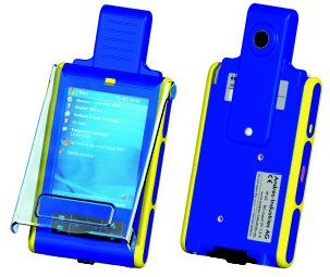 Mit der Gürtelhalterung hat man seinen PDA immer bei sich. In Kombination mit der Displayklappe erreicht man einen Schutz, der weit über den einer handelsüblichen Ledertasche hinaus geht. |