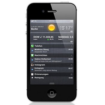 Sie haben nun folgende Möglichkeiten:Jetzt können Sie Ihr Apple iPhone 4S, 64GB, schwarz einfach mit Stimme benutzen. Sprechen Sie mit Siri so, wie Sie mit einer Person sprechen. Siri spricht Deutsch und versteht nicht nur, was Sie sagen, sondern auch was Sie meinen. Es erkennt, welche Apps für die richtige Antwort nötig sind. Und antwortet dann, wie ein persönlicher Assistent. Siri telefoniert, sendet Nachrichten, plant Meetings, legt Erinnerungen fest und mehr. Was noch? Fragen Sie einfach, und Siri sagt es Ihnen. (Hinweis: Siri ist als Betaversion nur auf dem Apple iPhone 4S, 64GB, schwarz verfügbar und setzt Internetzugriff voraus. Siri ist möglicherweise nicht in allen Sprachen oder allen Regionen verfügbar. Die Funktionen des Programms können je nach Region variieren. Es können Mobilfunkgebühren anfallen)