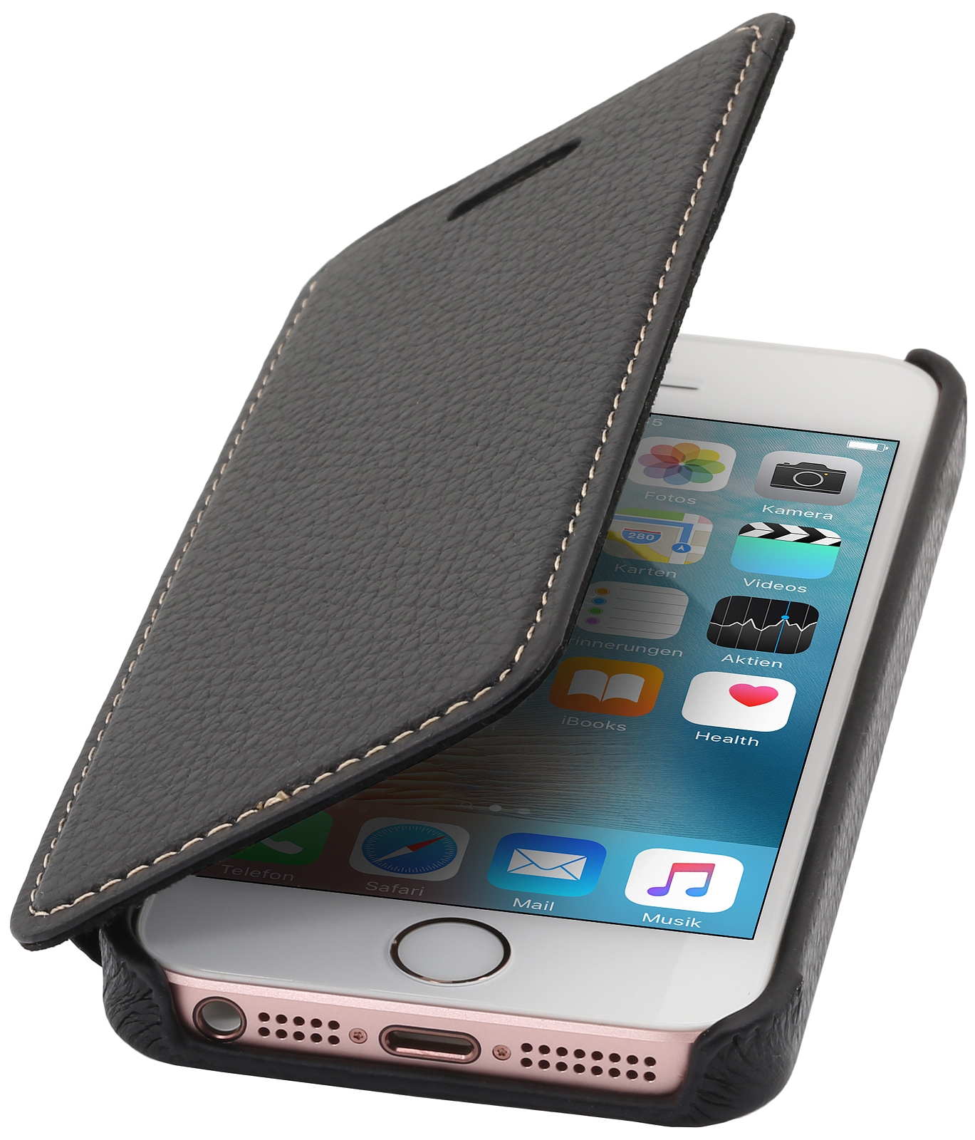Book Case aus Leder, schwarz für Apple iPhone SE