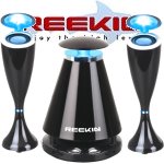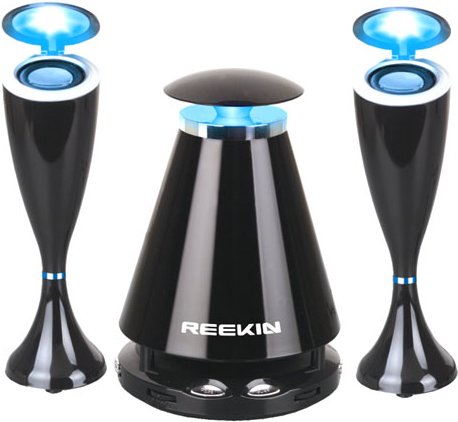 Reekin Multimedia-System Barracuda 2.1 Multimedia Lautsprecher-System mit eingebautem FM-Radio, Subwoofer und Nacht-Beleuchtung