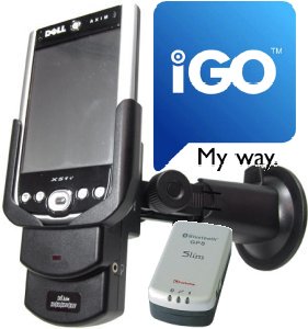 Bundle: Dell Axim X51v + iGO Navigationssoftware mit Kartenmaterial von Westeuropa auf 1GB Speicherkarte + FORTUNA SLIM -Light-Packages- Bluetooth GPS Sirf III + Car Kit mit aktivem Lautsprecher