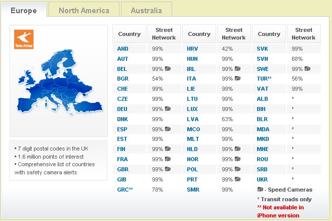 Sygic arbeitet mit Tele Atlas und Wherels zusammen, damit Ihnen die aktuellesten Karten zur Verfügung stehen.