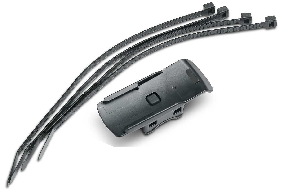 Die Garmin Fahrradhalterung (010-11023-00) wird am Lenker oder Vorbau Ihres Fahrrades montiert. Die Befestigung erfolgt über beiliegende Kabelbinder. Der Garmin GPS Gerät wird über die Schienen an der Rückseites des Gerätes auf die Halterung gesteckt. Zusätzlich rastet die Halterung auf der Rückseite des Garmin GPS Gerät ein und bietet dadurch eine sichere und zuverlässige Befestigung. Hinweis: bei Modellen der inReach Reihe benötigen Sie u.U. den Garmin Adapter mit Karabiner für die Montage an der Gehäuserückseite (010-12723-00).